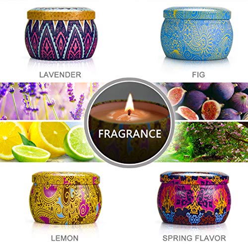 Velas Aromaticas Cera de Soja, Velas Perfumadas Regalos para Mujer, 4*4.4oz 25-30 Horas, Cumpleaños, Aniversario, Aromaterapia,Día de Acción de Gracias, Lavanda, Limón, Higo, Primaveral