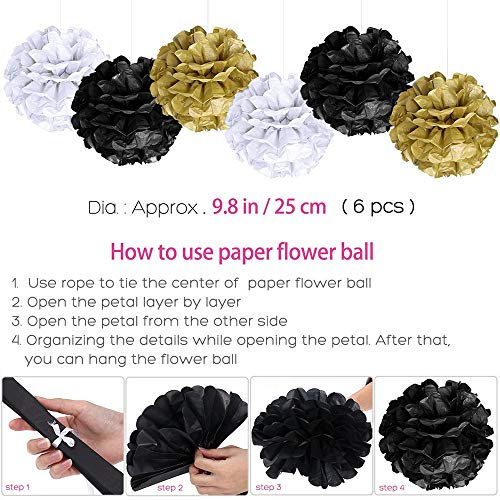MMTX 40 Globos Cumpleaños Decoracione Oro Negro, Happy Birthday cumpleaños, Pompones de Papel, Globos de Papel de Oro para Hombres y Mujeres Adultos Decoración de Fiesta