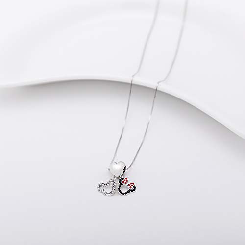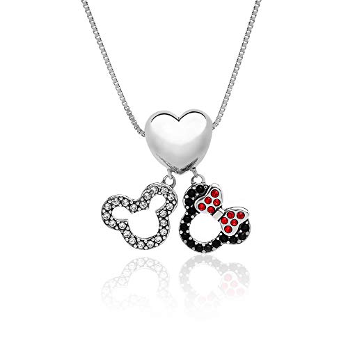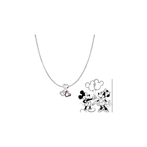 - El collar con colgante de plata de ley con diseño de Mickey Minnie Mouse de Disney está hecho de plata de ley s925. Un llamativo collar con su diseño único y personajes, el famoso collar de Disney Mickey y Minnie colgante. El tamaño total del colgante es: altura total de 2 cm; ancho total 2,5 cm para el colgante. Y los tamaños de longitud disponibles son de 16, 18 y 20 pulgadas.