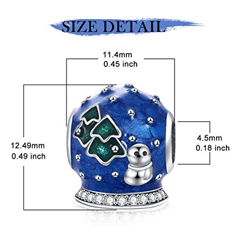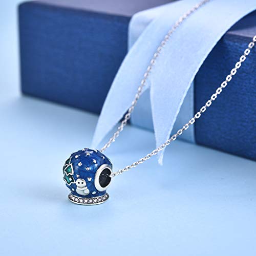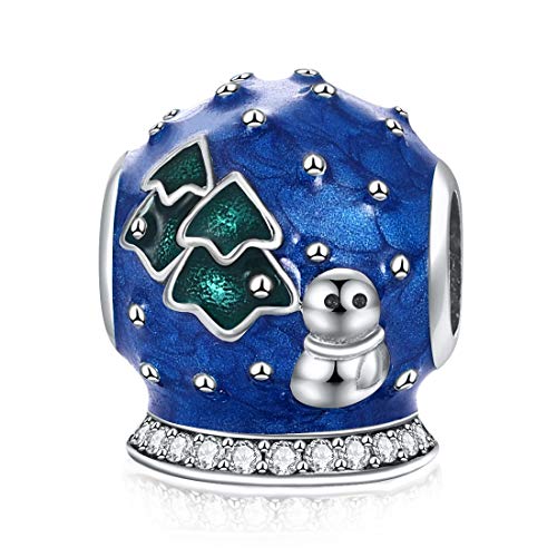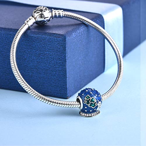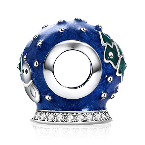 JIAYIQI - Abalorio de bola de cristal de nieve azul para pulseras Pandora 925 de plata de ley para regalo de mujer