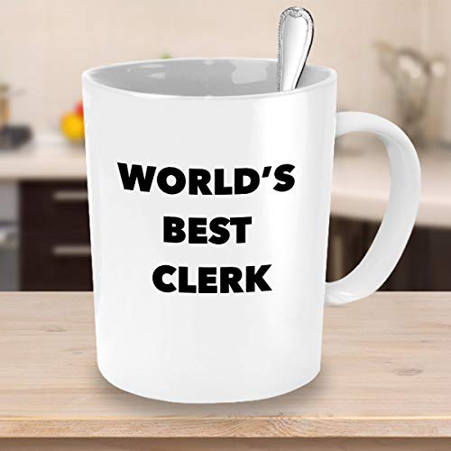 Taza de café Worlds Best Clerk, regalo de agradecimiento, regalo de cumpleaños, Navidad, idea de regalo para la entrada de datos, unidad de leyes, empleado de cuentas de nómina