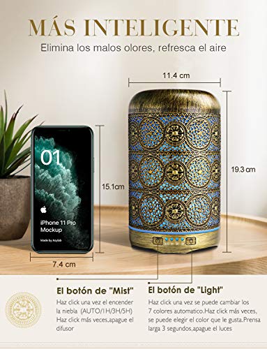 - ?【Decoración del Hogar y Regalo Ideal】Diseño Único Retro de Metal. El aspecto elegante se integra con su mueble, también puede usarlo como una hermosa decoración y ambientador casa de mesa para su acompañante. El difusor aceites esenciales de SALKING también son regalos considerado y convenientes para mujeres. El aceites esenciales aromaterapia es la tendencia popular.