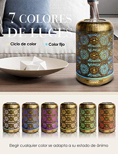 SALKING Humidificador Aceites Esenciales,260ml Difusor de Aromaterapia, Metal Humidificador Ultrasónico con 7 Colores,4 Configuraciones de Temporizador y Sin Agua Auto-Apaga, Regalo para Mujer
