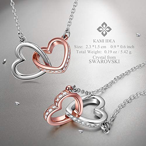Kami Idea Collar, Mi Fatídico Amor, Colgante de Corazón a Corazón, Joyas de Mujer, Cristales de Swarovski, Bisutería para Mujer en Oro Rosa, Caja de Regalo