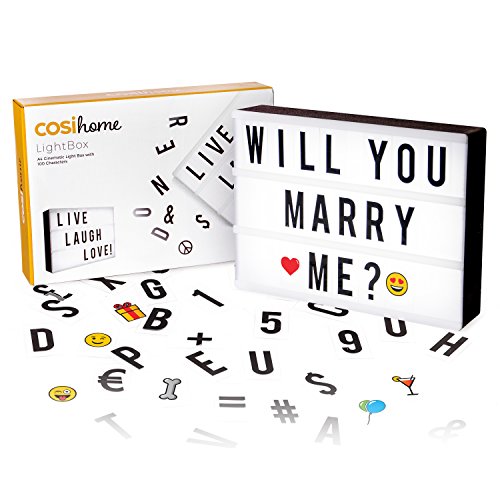 Cosi Home ™ - Caja de luz LED en formato A4 con letras, Emoji, emoticonos y símbolos para mensajes personalizados. Alimentado por batería y USB