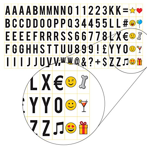 - DENTRO: Dentro de la caja de luz encontrará un cable USB de 1.5 m incluido, 100 letras negras incluidas con emojis y símbolos.