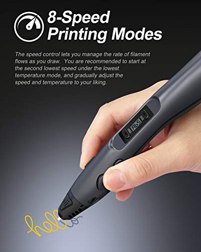 - ? 8 Control de Velocidad y Temperatura - Pantalla LCD con botones para cargar / descargar y ajustar la temperatura y la velocidad. 8 opciones de velocidad diferentes satisfacen todas sus necesidades. Puede elegir el modo según su 3d pen filament. La punta del lápiz de la impresora 3D no se obstruirá cuando haya terminado la obra maestra.