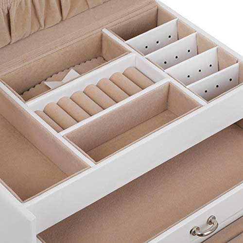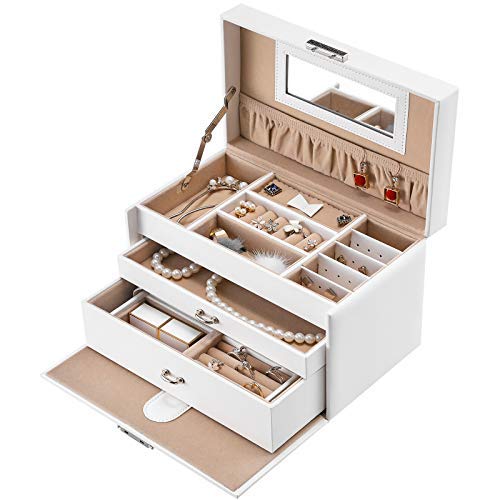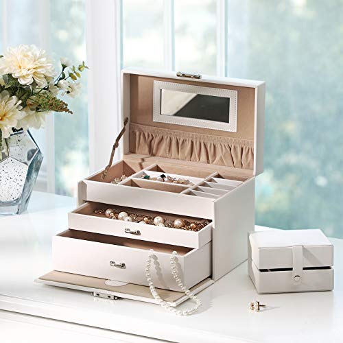 SONGMICS Caja Joyero 3 niveles, Estuche de Joyas con Cerradura, con joyero de viaje, Blanco JBC126W