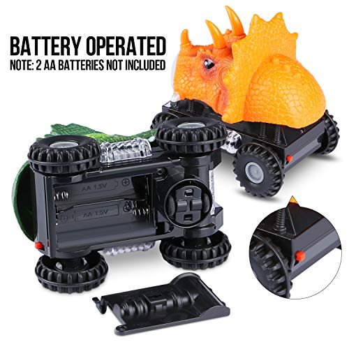 - ćPaquete y garantĆać Los coches de juguetes dinosaurios tambiĆ©n vienen con 4 baterĆas AA y un destornillador, todo lo que necesita para comenzar, sin compras adicionales. Para cualquier pregunta, no dude en contactarnos para obtener ayuda. Estamos seguros de hacerle un cliente 100% feliz.