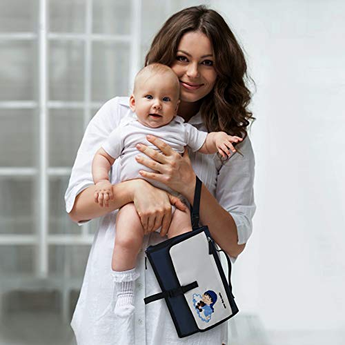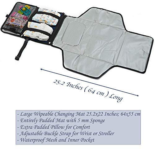 - ?SEGURO Y EXTREMADAMENTE PRÁCTICO - Este cambiador para bebés es portátil, de gran calidad, con una esterilla acolchada de quita y pon para cambiar pañales de 64 cm de largo y 55 cm de ancho. Se puede lavar, es fácil de limpiar, resistente al agua y mantiene a tu pequeño alejado de superficies sucias y gérmenes.