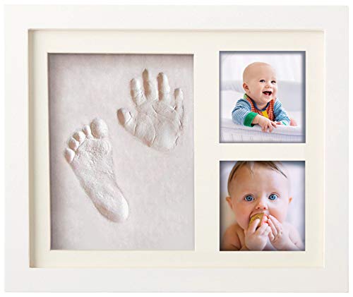 Kit de Marco para Huella de Pie y Manos del Bebe - 100% NO TÓXICO - Marco de Madera, Vidrio Acrílico y Espacio para 2 Fotos del Bebé - Regalos Originales para Bebes Recien Nacidos, Mamás y Papás