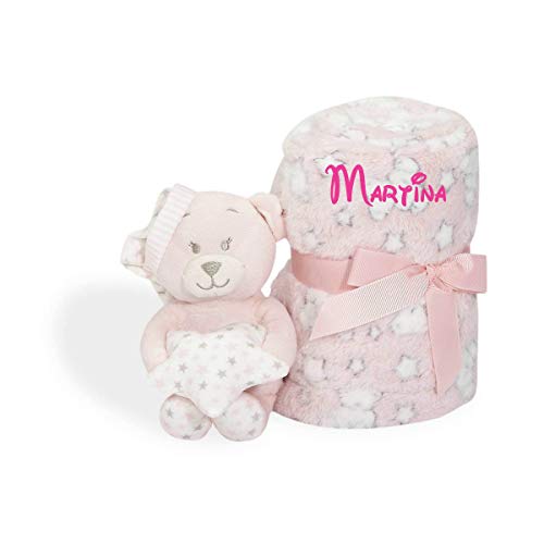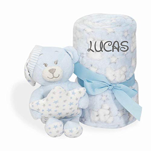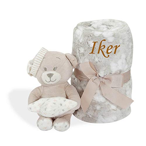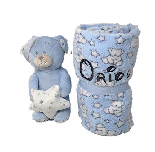 Set Peluche Manta Oso Personalizado con nombre bordado -Regalo recien nacido Bebe- - Danielstore -