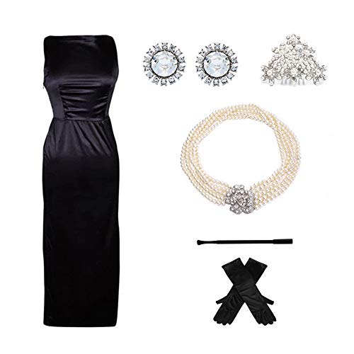 - Vaya a la multitud con su adorable gracia de audrey en nuestro vestido negro Holly Golightly completo, con cada pieza del vestuario cuidadosamente diseñada y retocada para lograr la imitación más cercana y más halagadora de la versión original presentada en la película.