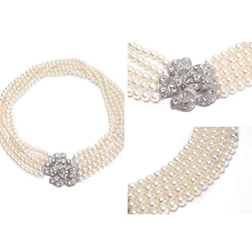 - El juego incluye: vestido largos guantes de satén elásticos negros collar de perlas con colgante de flores pendientes de diamantes falsos pieza de pelo con piedras preciosas boquilla extendida