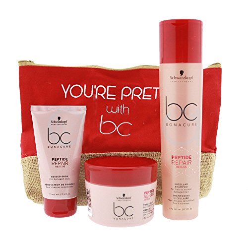 Schhwarzkopf Bc Bonacure Peptide Repair Rescue Champú 250ml, Mascarilla 200ml y Serum Puntas Abiertas 75ml