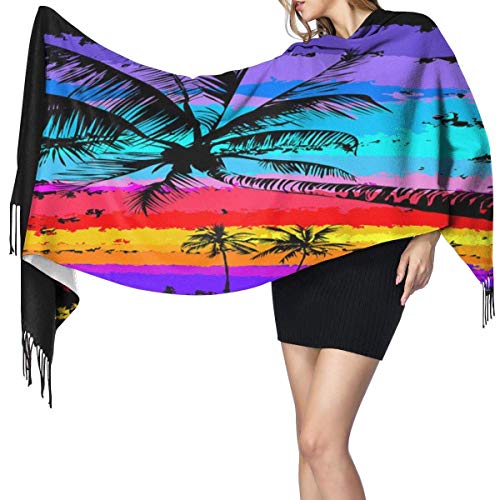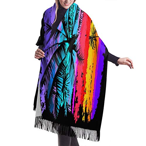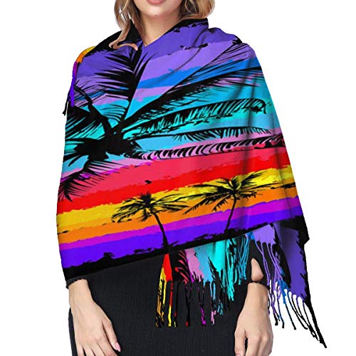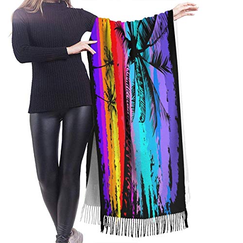 Palm Rainbow Coconut Tree Tropical Wrap Bufanda Invierno Cálida Cachemira Chal Bufanda Portátil Ligero Pañuelo Cómodo Mujeres Cuello Bufanda Durable Lujosa Bufanda Al Aire Libre Bufanda Para Otoño