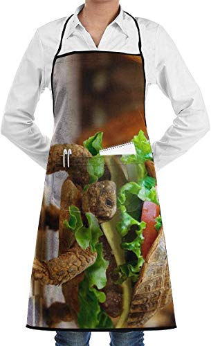 Babero Delantal Chef Cute Burger Turtle Waterproof Bib Apron with Pocket for Women, Men, Chef, Kitchen, Home, Restaurant, Cafe, Cooking, Baking, Gardening Etc