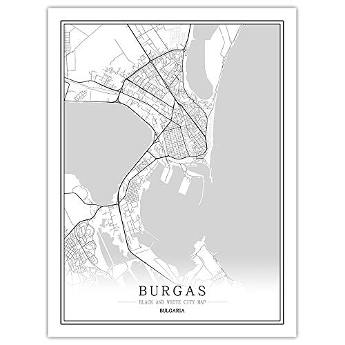 LucklyingBao Impresiones sobre Lienzo,Bulgaria Mapa De La Ciudad Creativa Impresión HD Abstracta Burgas Lienzo Pintura En Blanco Y Negro Arte De La Pared Impresión del Cartel Imagen Decoración del Ho