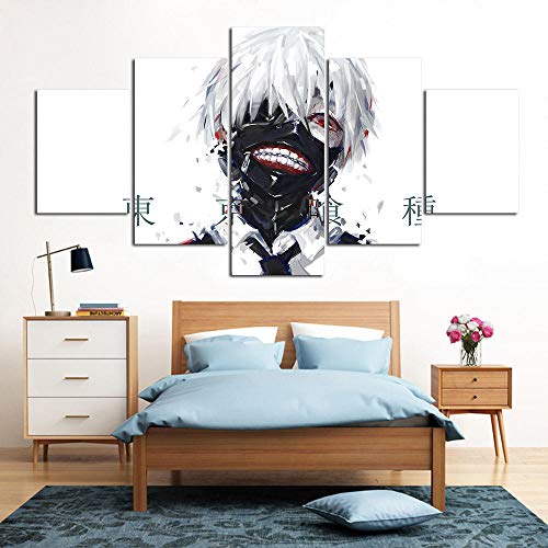 5 Piezas sin marcoImprimir Japón Animación Tokyo Guru C oon ation Boy Bed Cuadro Mural para decoración del hogar Decoración hogareña-40x20inch(8x14 8x18 8x22inch)