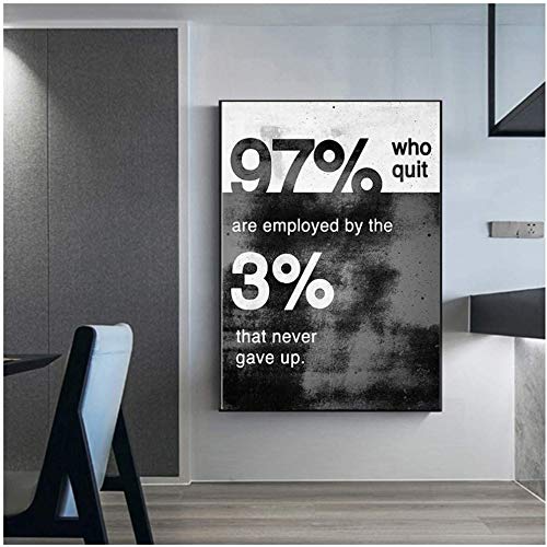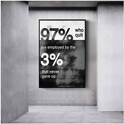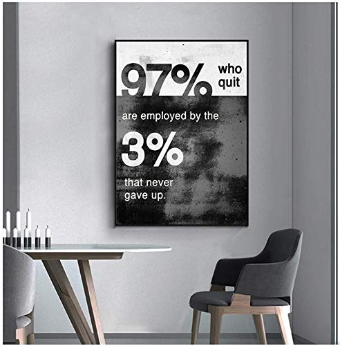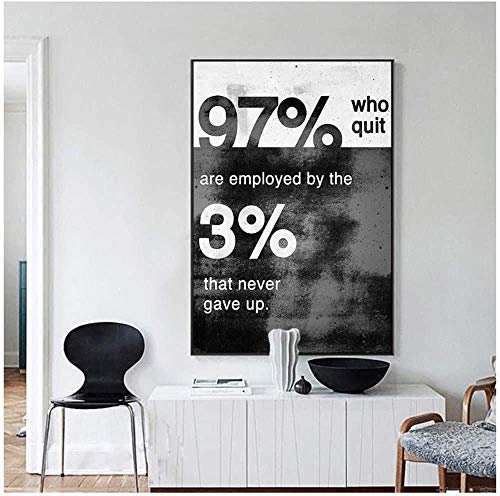 Surfilter Print on Canvas Never Gave Up Modern Blanco y negro Motivacional Quate Art Pintura en lienzo Cuadro de pared para decoración del hogar Póster 19.6& rdquo; x 27.5& rdquo; (50x70cm) Sin m