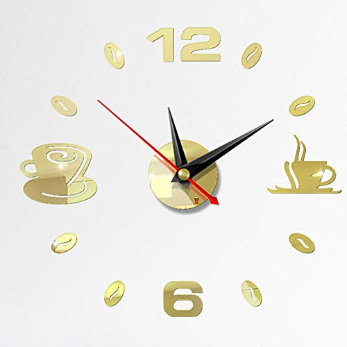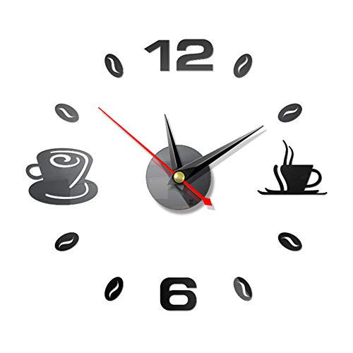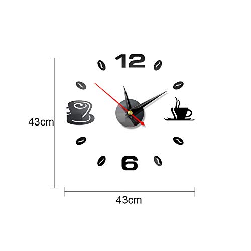 ZSooner - Reloj de pared de acrílico 3D, diseño de taza de café DIY pegatinas 3D reloj silencioso para el hogar/oficina/restaurante – 43 x 43 cm, No nulo, Plateado espejo., Tamaño libre