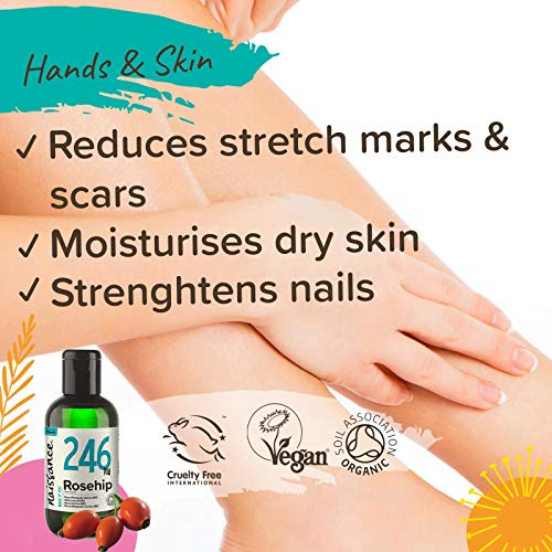 - ❤ IMPRESIONANTE Y VERSÁTIL: Además de para el cuidado de la piel, el aceite rosa mosqueta cicatrizante es ideal como aceite capilar, como aftershave y como aceite corporal para el tratamiento del acné, la psoriasis, la neurodermatitis, las estrías, la celulitis y las cicatrices. Los hombres también descubrieron hace mucho tiempo que el rosehip oil era un gran producto de cuidado y lo utilizan como aceite para barba.