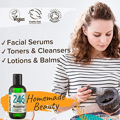 Naissance Aceite Vegetal de Rosa Mosqueta Canina BIO n. º 246 – 100ml - Puro, natural, vegano, certificado ecológico, sin hexano y no OGM - Hidrata y nutre todo tipo de pieles, el cabello y las uñas.
