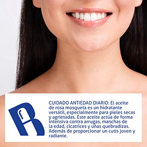 - CUIDADO ANTIEDAD DIARIO: El aceite de rosa mosqueta es un hidratante versátil, especialmente para pieles secas y agrietadas. Este aceite actúa de forma intensiva contra arrugas, manchas de la edad, cicatrices y uñas quebradizas. Además de proporcionar un cutis joven y radiante.