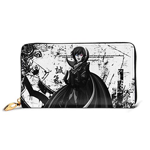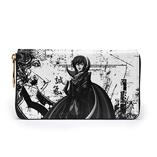 XCNGG Code Geass Cartera con Bloqueo Carteras de Cuero Genuino Cartera con Doble Cremallera Organizador Bolsa de Embrague Titular de la Tarjeta de crédito Monedero de Gran Capacidad Bolsa de teléfono