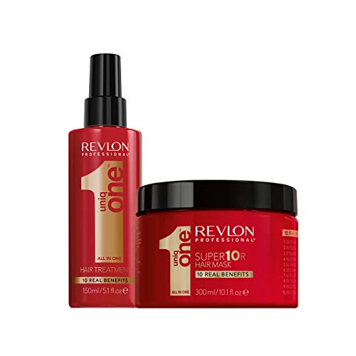 UniqOne Revlon Professional Classico Tratamiento en Spray para Cabello 150 ml y Super10R Mascarilla 300 ml - Pack 300 ml