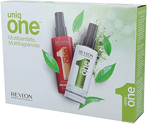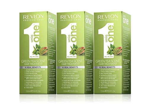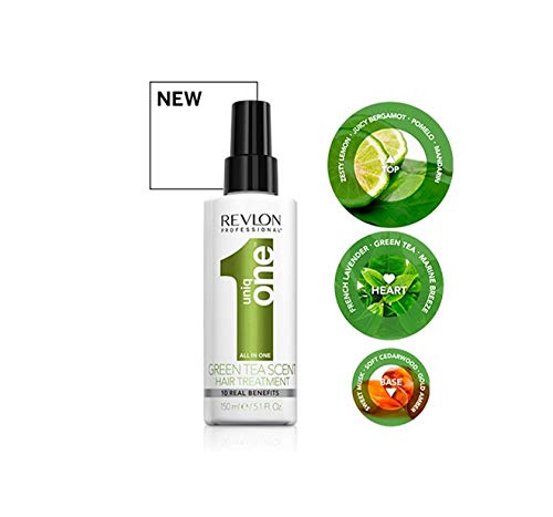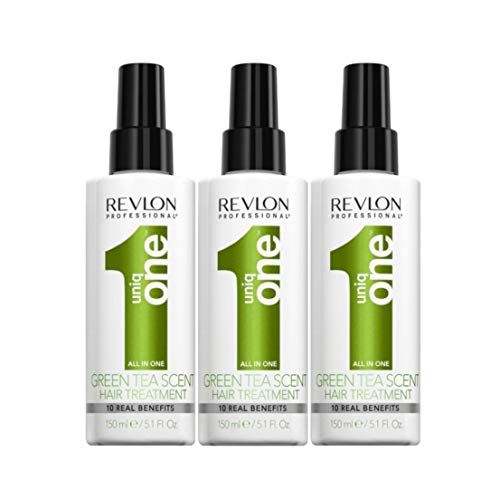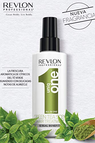 - ??El nuevo tratamiento capilar en espray UniqOne Green Tea todo en uno sin aclarado, es ideal para todo tipo de cabellos y es la más reciente creación de Revlon para el mundo de la peluquería. El tratamiento ofrece diez beneficios esenciales, lo que lo ha convertido en el favorito de la temporada.