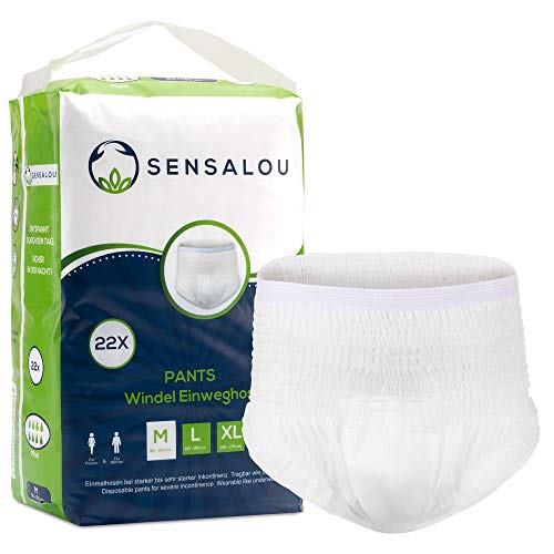 Sensalou Pantalones Incontinencia para Adultos Hombre y Mujer - Ropa Interior - Protector Perdidas de Vejiga Débil - Pañales Desechables Mojar Cama, Maternidad - 22 unidades - Blanco, Tallas Medium