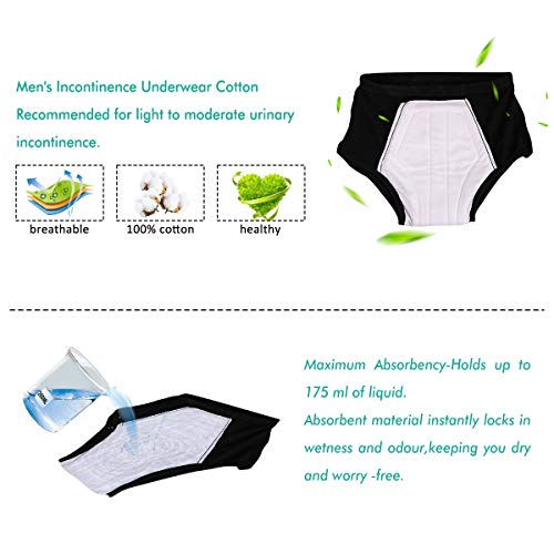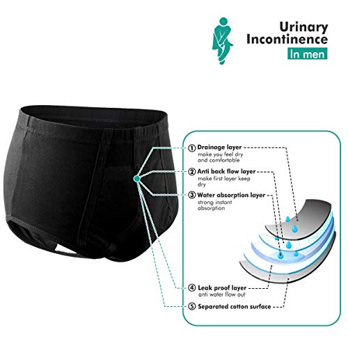 - Incontinence Briefs for Men: perfecto para la incontinencia urinaria, ropa interior protectora para hombres con una capa externa de algodón, que evita las fugas y le brinda doble protección. La almohadilla absorbente absorbe hasta 200 ml, adecuada para luz / moderada.