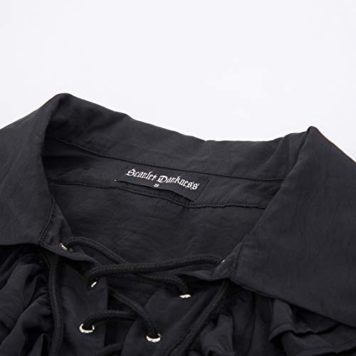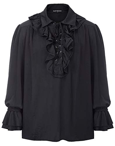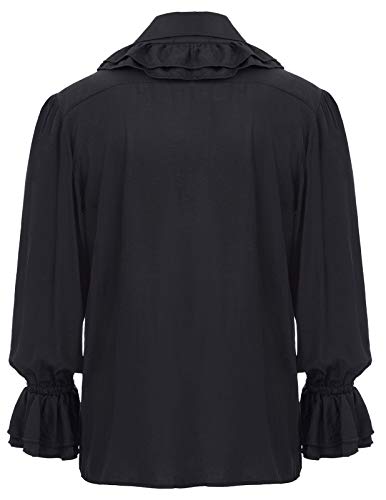 Camisa Pirata Masculina gótica Medieval Steampunk Renacimiento Vintage Manga Larga con Volantes Encaje Cordones Talla XL Negro SL14