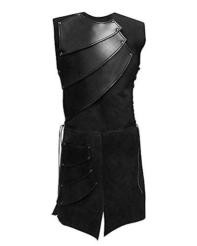 Hombres Túnica Sin Mangas Camisetas Cuello Redondo Chaleco Medieval Chaqueta Negro M