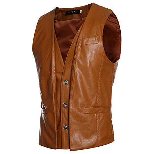 Moda Masculina Falso Chaleco de Dos Piezas de Cuero Vintage Estilo Medieval Chaleco Delgado Juego de rol Montar a Caballo