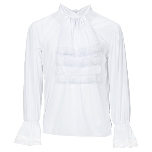 Amakando Camiseta Medieval Camisa de Volantes Blanca M/L 50/52 Ropa Medieval Hombre Disfraz Noble Renacimiento Camiseta Masculina barroca con Vuelo Vestimenta Vampiro