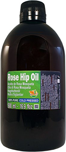 - El Mejor Cosmetico Natural para una Piel Sana, Hidratada y Joven. Botella Super Extra Grande de 500ml (Medio Litro). Aceite 100% Puro de Rosa Mosqueta Origen Chile, Envasado en UE. Virgen Extra + Prensado en Frio + Recolección Manual + 100% Natural