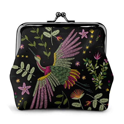 Monedero de Cambio Mujeres y Niñas Bolso del Cambio Monedero pequeño Grulla Ave Flores Rosa Rosa Mosqueta Planta