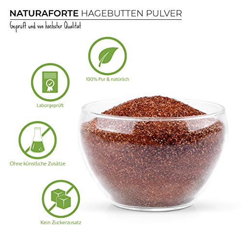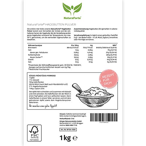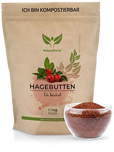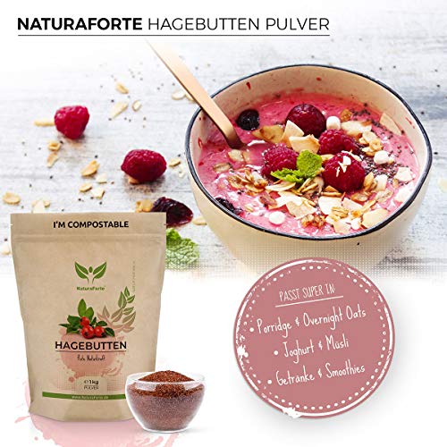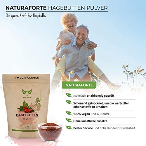 NaturaForte Polvo de rosa mosqueta 1kg â De calidad y cultivo controlado, Polvo de rosa mosqueta entero molido, Sin gluten, Vegano, Sin azĂșcar añadido y embalaje biodegradable