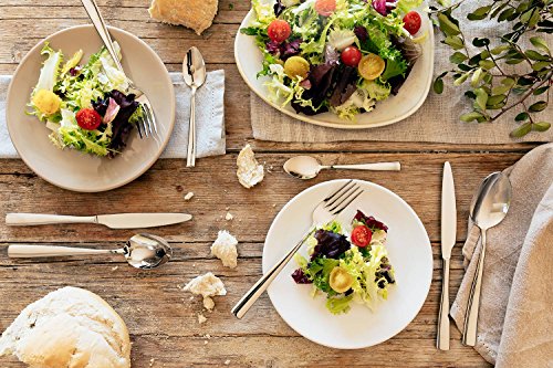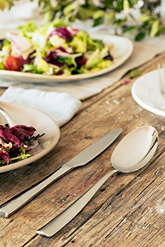 - Set de 42 piezas: contiene seis cucharas, tenedores y cuchillos de mesa además de seis cucharas de café, seis tenedores de tartas, seis cucharillas de moka y seis cuchillos de fruta