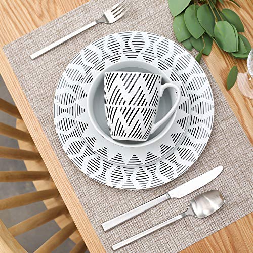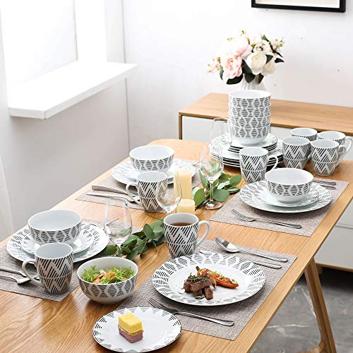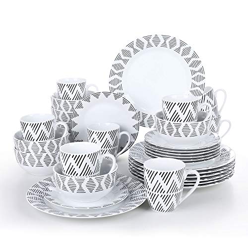 VEWEET Humphrey Juego de Vajilla 32 Piezas con 8 Platos Llanos, 8 Platos de Postre, 8 Cuenco de Cereal y 8 Tazas para 8 Personas