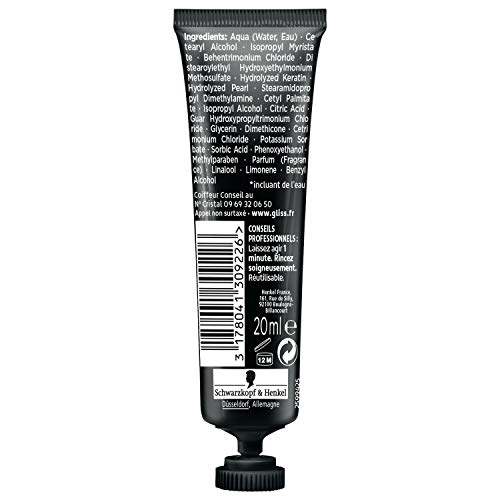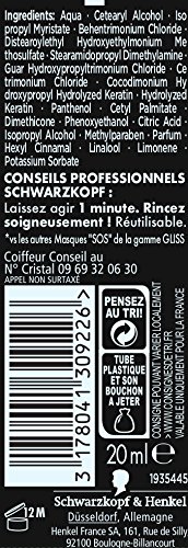 - La fórmula untuosa de alto rendimiento está enriquecida con 3 más puntos de contacto callar líquidos idénticos a los del cabello. Repara de forma específica incluso las zonas extremadamente dañadas para una regeneración definitiva de la fibra capilar. Vs otras máscaras "SOS" de la gama Gliss.