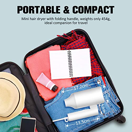 - 【Diseño Compacto & Ligero】 Nuestro secador profesional peluqueria es liviano (solo 454g) y compacto (23.1x12.3x7.5cm) gracias a su mango plegable, le será más fácil de almacenar y transportar que otros secadores tradicionales, por lo tanto ahorrará mucho espacio, y será perfecto para el hogar, viajar, y salones de peluquería profesionales. Lleve su estilo siempre consigo allá dónde vaya