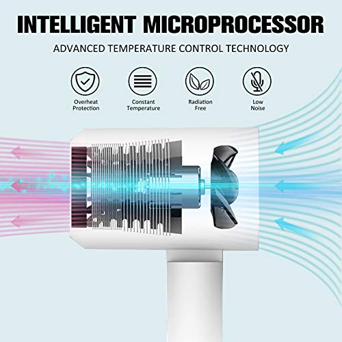 - 【Tecnología Avanzada de Aniones para el Cuidado del Cabello】 Adoptando la tecnología de cuidado del cabello aniónico, nuestro secador pelo profesional liberará millones de iones negativos humectantes, que junto con la función inteligente de protección de temperatura constante, hará que el cabello quede muy húmedo, brillante y tan suave como la seda, esto lo protegerá intensamente contra posibles daños y roturas , dejará su cabello más suave y saludable