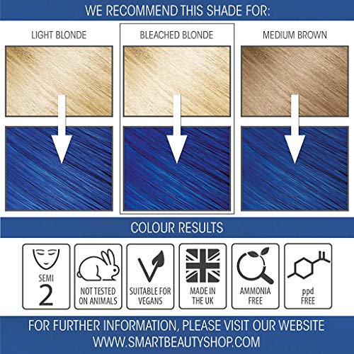 - Deja la sensación del cabello, suave, suave e hidratada con un vibrante color azul eléctrico.
