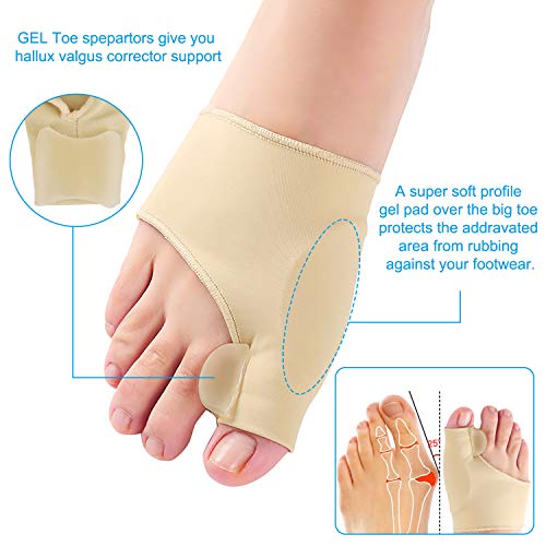 - ❤ La protección del dedo del pie y el alivio del dolor de juanete: Diseñado para proporcionar alivio instantáneo del dolor para su dedo gordo del pie de Dolor de juanete, Toe Overlapping y deriva. Lo más importante es el cojín de gel mantiene los dedos de los pies rectos en lugar de apoyarse en su dedo del pie próximo, evitar los problemas Hallux Valgus y enderezar los huesos de los pies.