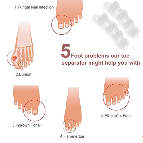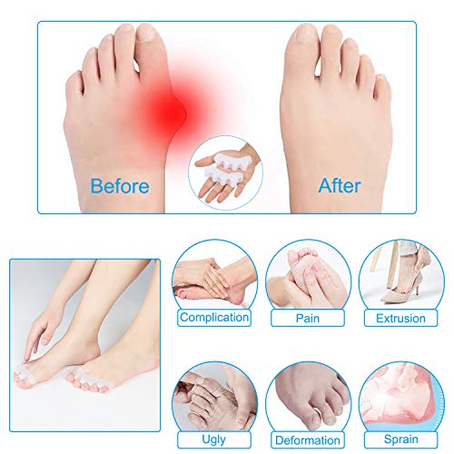 - Sintomas de Pie Aplicables: Separador de dedo del pie ideal para Juanete hallux valgus, bunionette, juanete, bursitis solapamiento del dedo del pie, pinza para dedos de los pies y otros problemas de desorden de pie aliviar el desarrollo de la deformidad del dedo del pie