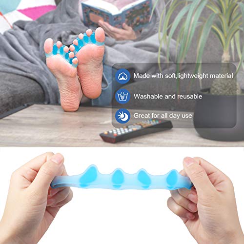 - GEL DE GRADO MÉDICO SEPARADOR DEDOS - Corrector de la postura del dedo del pie diseñado con gel de grado médico sin látex y estirable, le da un masaje a sus pies, es bueno para la alineación de los pies y no tiene que preocuparse por las irritaciones y alergias. Fácil de lavar con agua y jabón