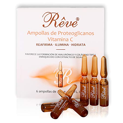 - POTENTE EFECTO REVE ampollas de proteoglicanos con acción reafirmante, reparadora y antioxidante ideal para tu rostro, su contenido en vitamina c consigue también una acción iluminadora, repara el daño solar y reduce las arrugas.